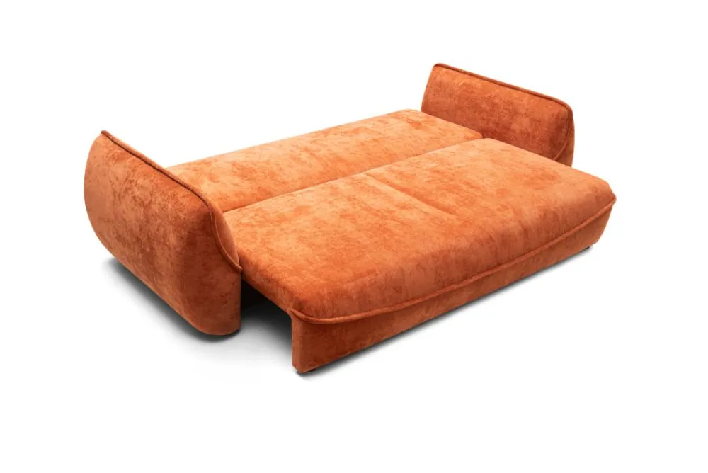Z funkcjonalnym pojemnikiem na pościel ukrytym pod siedziskiem, kanapa Lora to doskonały wybór dla osób ceniących porządek i ergonomiczne rozwiązania. Praktyczny schowek pomieści kołdry, poduszki lub inne tekstylia domowe. Funkcja spania typu DL pozwala w kilka sekund zmienić sofę w wygodne łóżko dla dwóch osób.