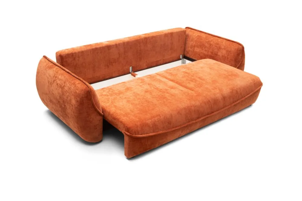 Z funkcjonalnym pojemnikiem na pościel ukrytym pod siedziskiem, kanapa Lora to doskonały wybór dla osób ceniących porządek i ergonomiczne rozwiązania. Praktyczny schowek pomieści kołdry, poduszki lub inne tekstylia domowe. Funkcja spania typu DL pozwala w kilka sekund zmienić sofę w wygodne łóżko dla dwóch osób.