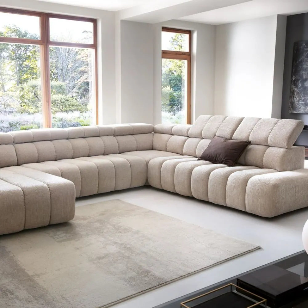 Narożnik Zurich w kształcie litery U pasuje doskonale zarówno do tradycyjnych salonów, nowoczesnych loftów, jak i przestronnych wnętrz. Jego zaokrąglone kształty nie tylko dodają elegancji, ale również funkcjonalności, idealnie dopasowując się do różnorodnych aranżacji wnętrz.