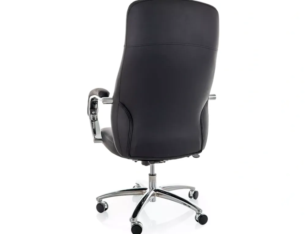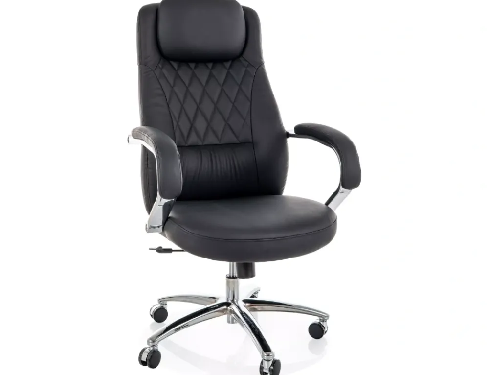 Fotel obrotowy, ekoskóra, kolor: czarny, multiblock, regulowany zagłówek, stałe podłokietniki.