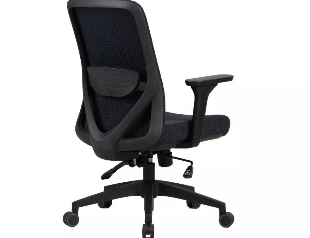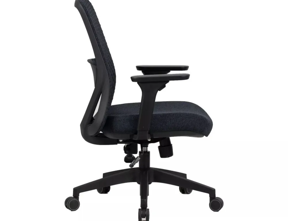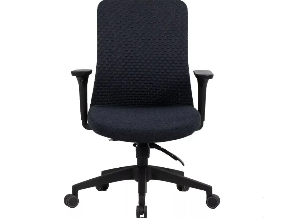 Fotel obrotowy ergonomiczny, spełnia wymogi BHP dotyczące krzeseł biurowych zgodnie z rozporządzeniem Dz. U. poz.2367. Tkanina 3D / tkanina, kolor: czarny, mechanizm TILT, multiblock, regulowane podłokietniki oraz odcinek lędźwiowy.