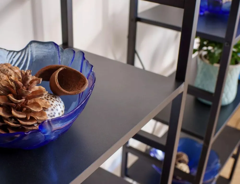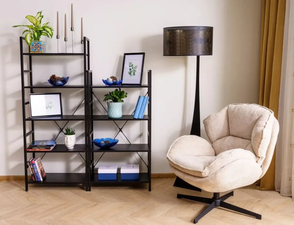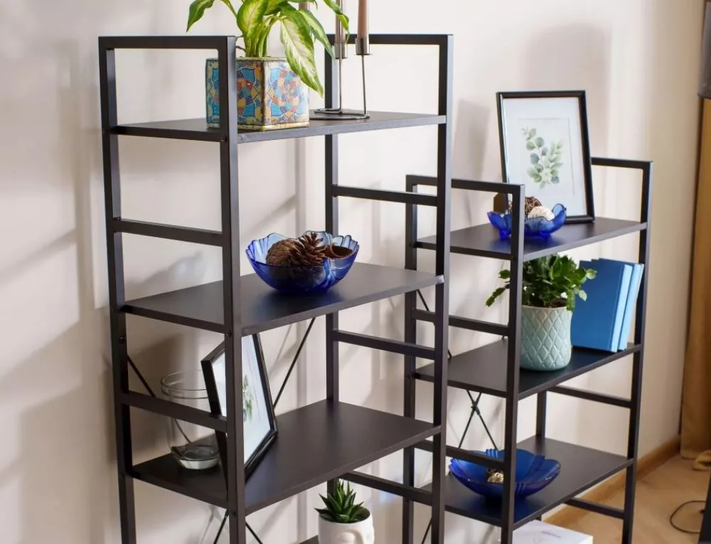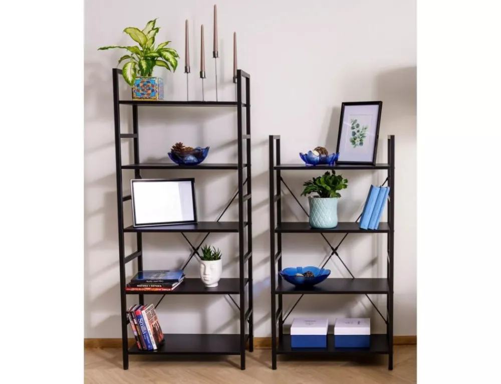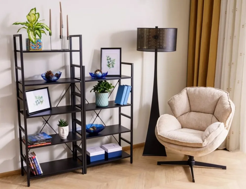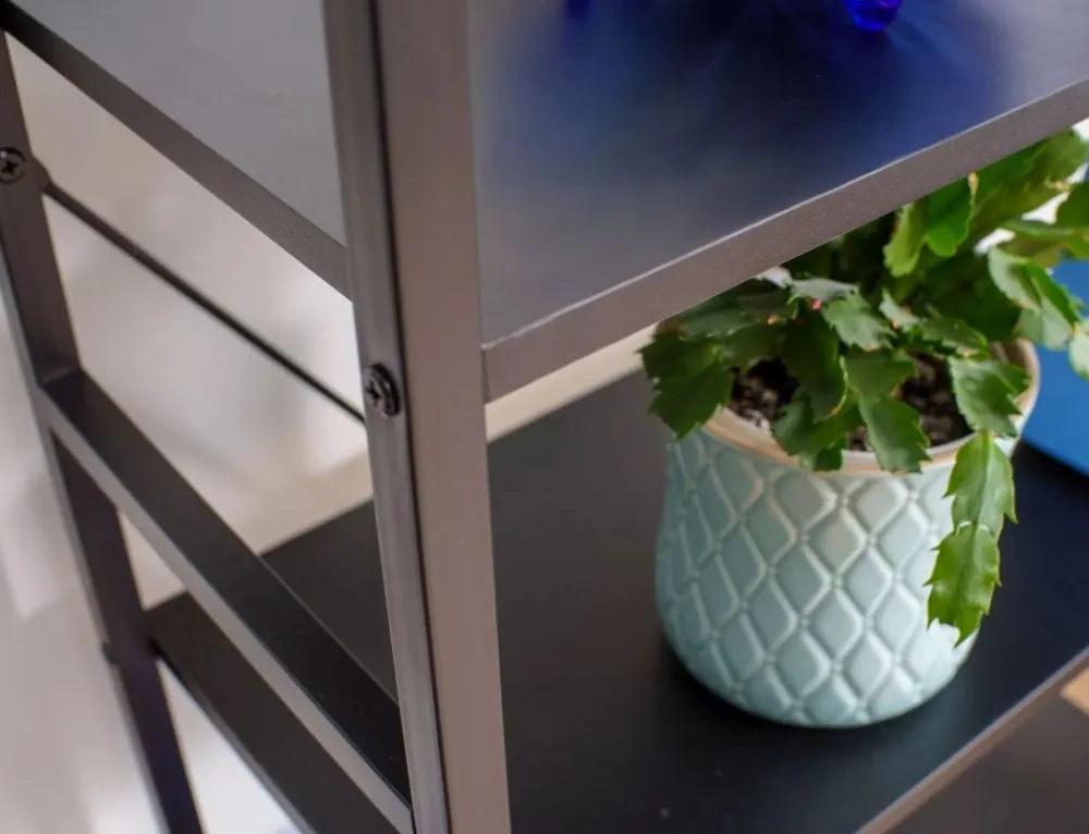 Regał, półki: płyta laminowana, stelaż: metal, kolor: czarny / czarny mat.