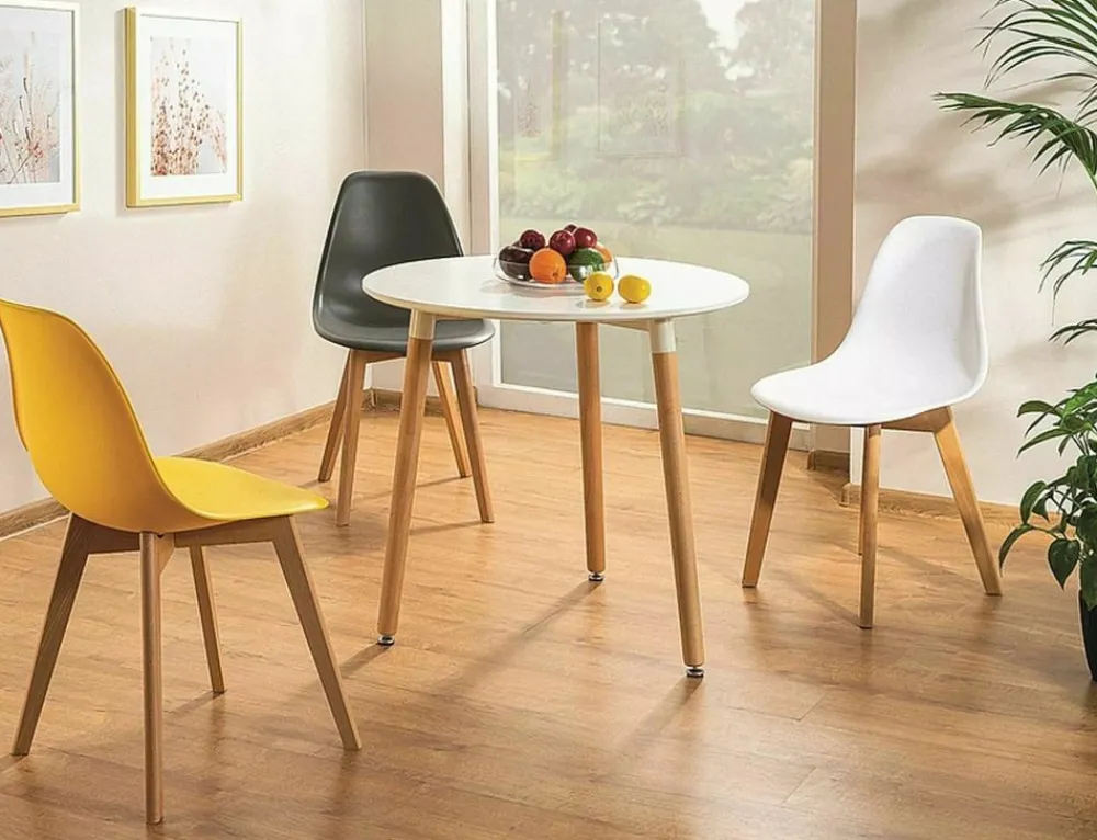 Krzesło, tworzywo PP, jasny szary / drewno bukowe.