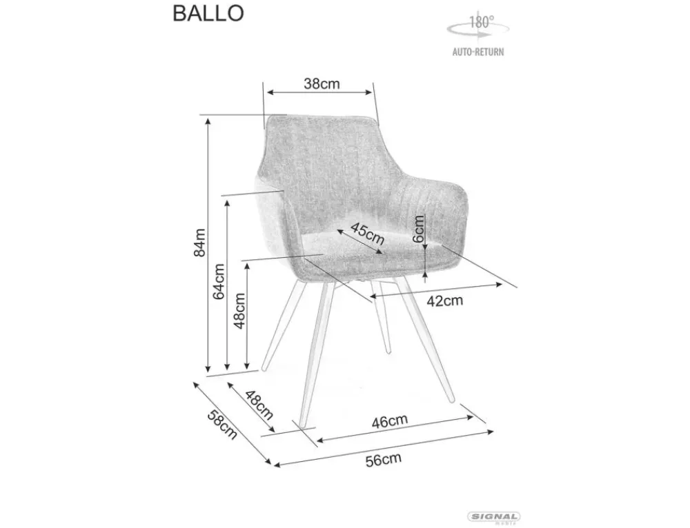 Krzesło, tapicerka: tkanina Brego 07, stelaż: metal, kolor: szary / czarny mat.Funkcja auto-return – siedzisko obracane w zakresie 180st, z funkcją powrotu do pierwotnej pozycji.