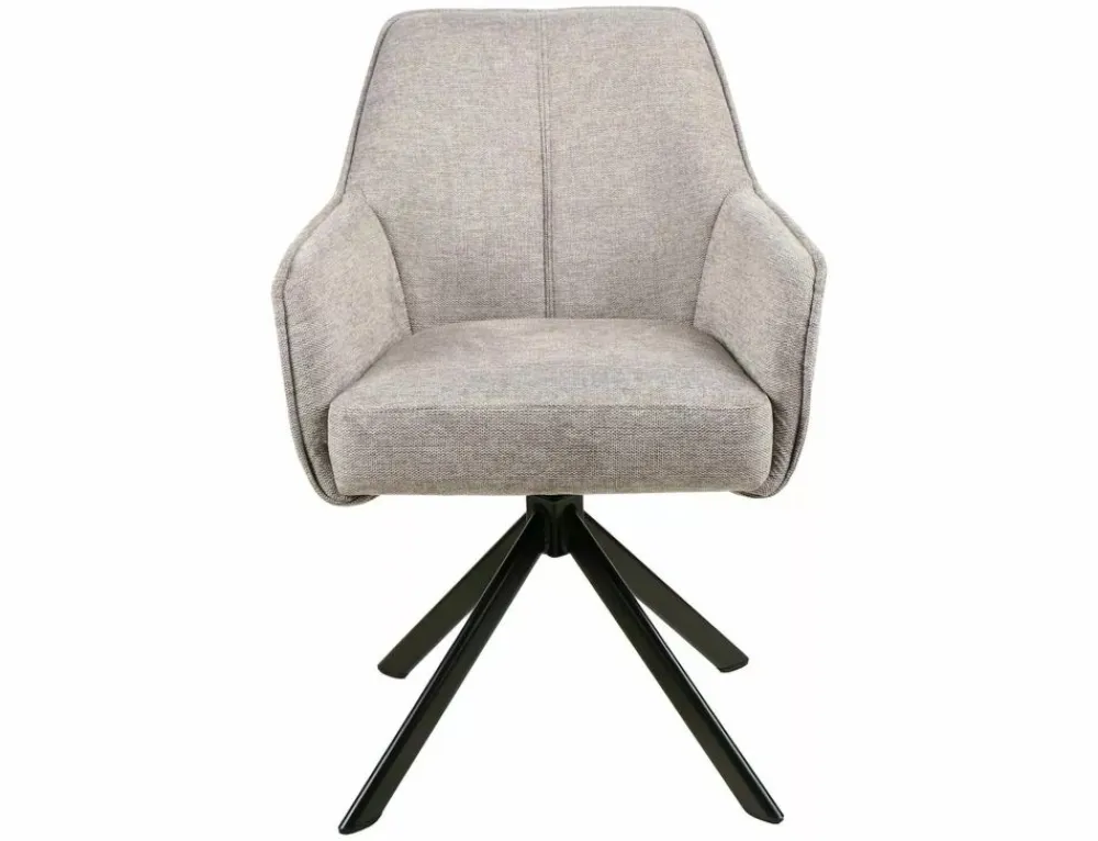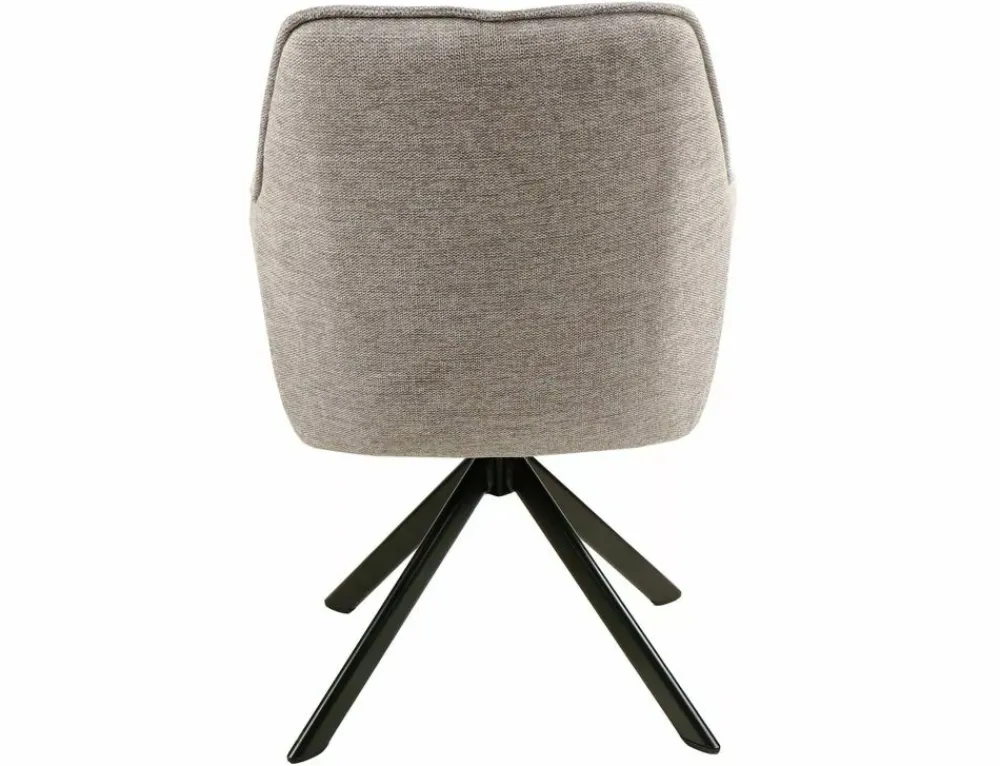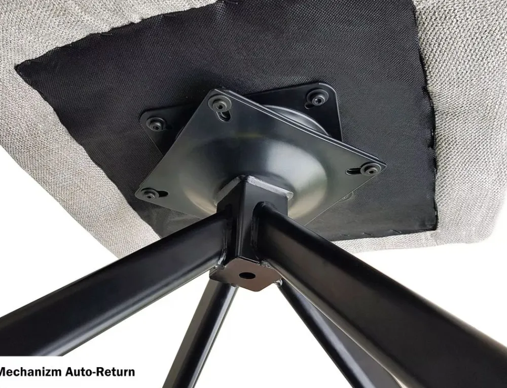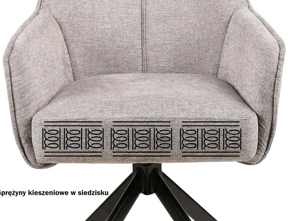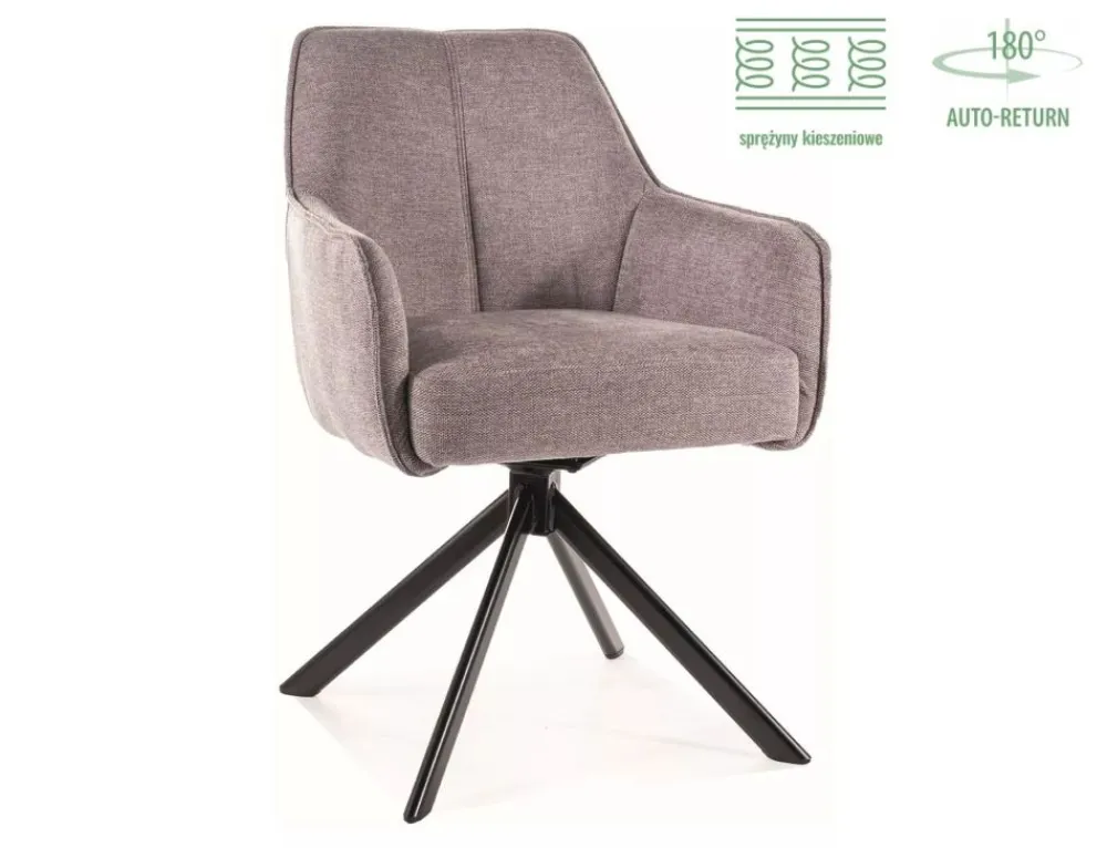 Krzesło, tkanina Brego, kolor: szary 07, stelaż: metal, czarny mat. Siedzisko obracane w zakresie 180st, z funkcją powrotu do pierwotnej pozycji. Siedzisko wyposażone w sprężyny kieszeniowe.