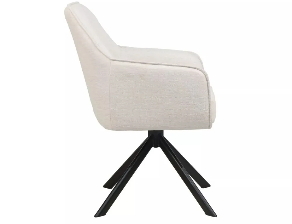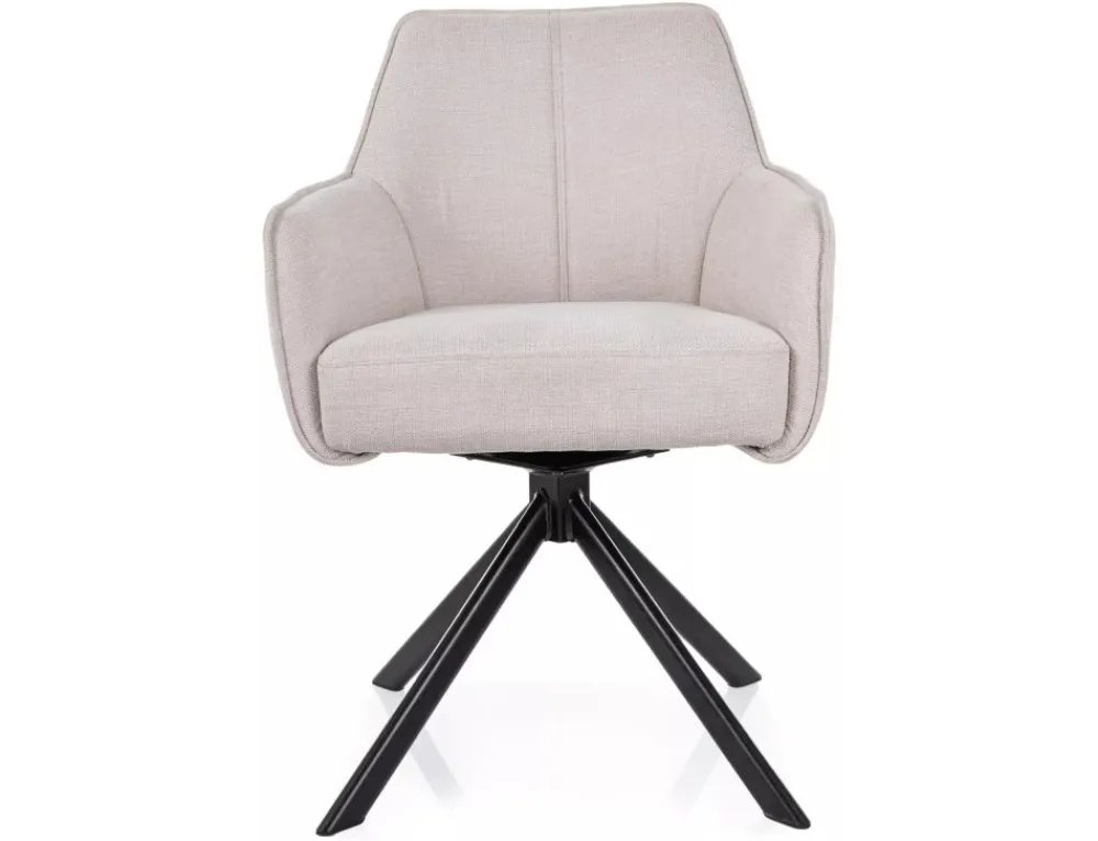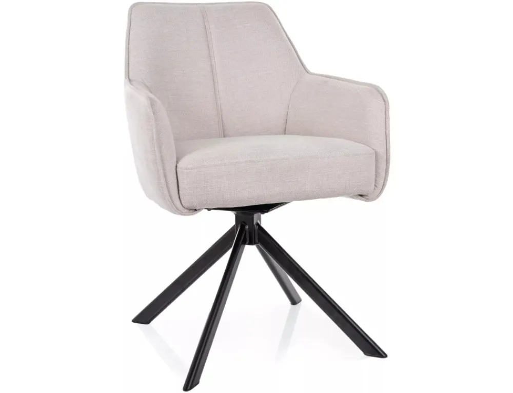 Krzesło, tapicerka: tkanina Brego 22, stelaż: metal, kolor: jasny beżowy / czarny metal.Funkcja auto-return – siedzisko obracane w zakresie 180st, z funkcją powrotu do pierwotnej pozycji. Sprężyny kieszeniowe w siedzisku.