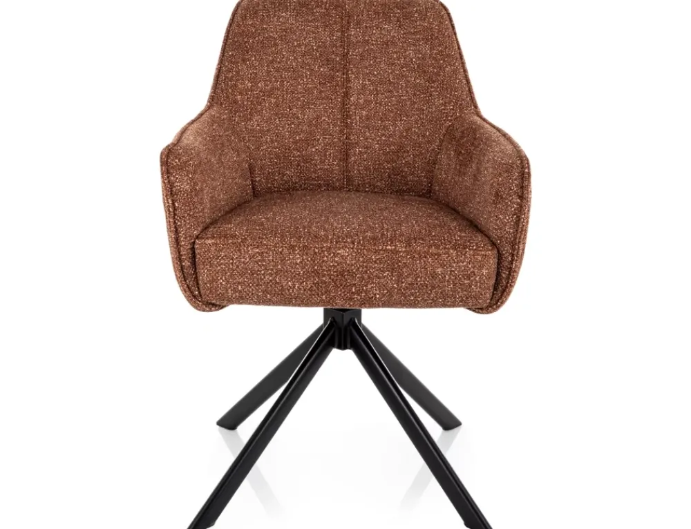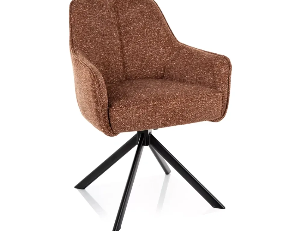 Krzesło, tapicerka: tkanina Leo, stelaż: metal, kolor: camel 35 / czarny mat. Funkcja auto-return – siedzisko obracane w zakresie 180st, z funkcją powrotu do pierwotnej pozycji. Siedzisko wyposażone w sprężyny kieszeniowe.
