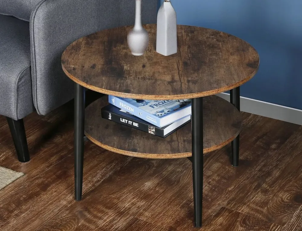 Ława, blat: płyta laminowana, stelaż: metal, kolor: brąz rustykalny / czarny mat.