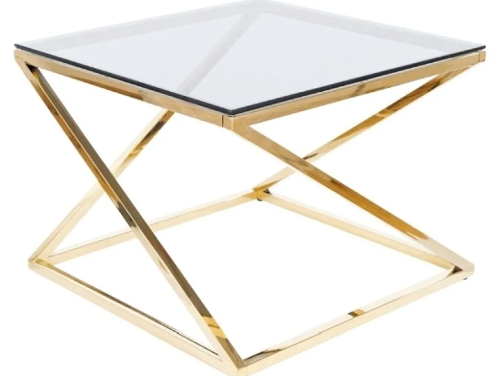 Ława,blat: szkło hartowane dymione, stelaż: stal nierdzewna, kolor: złoty.
