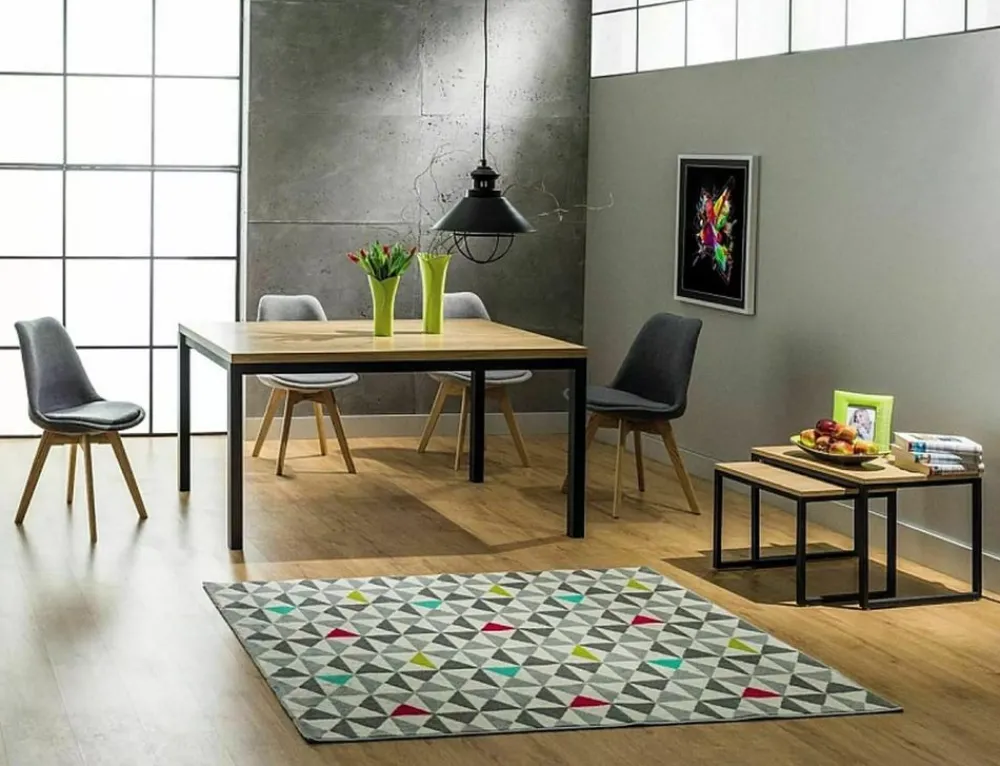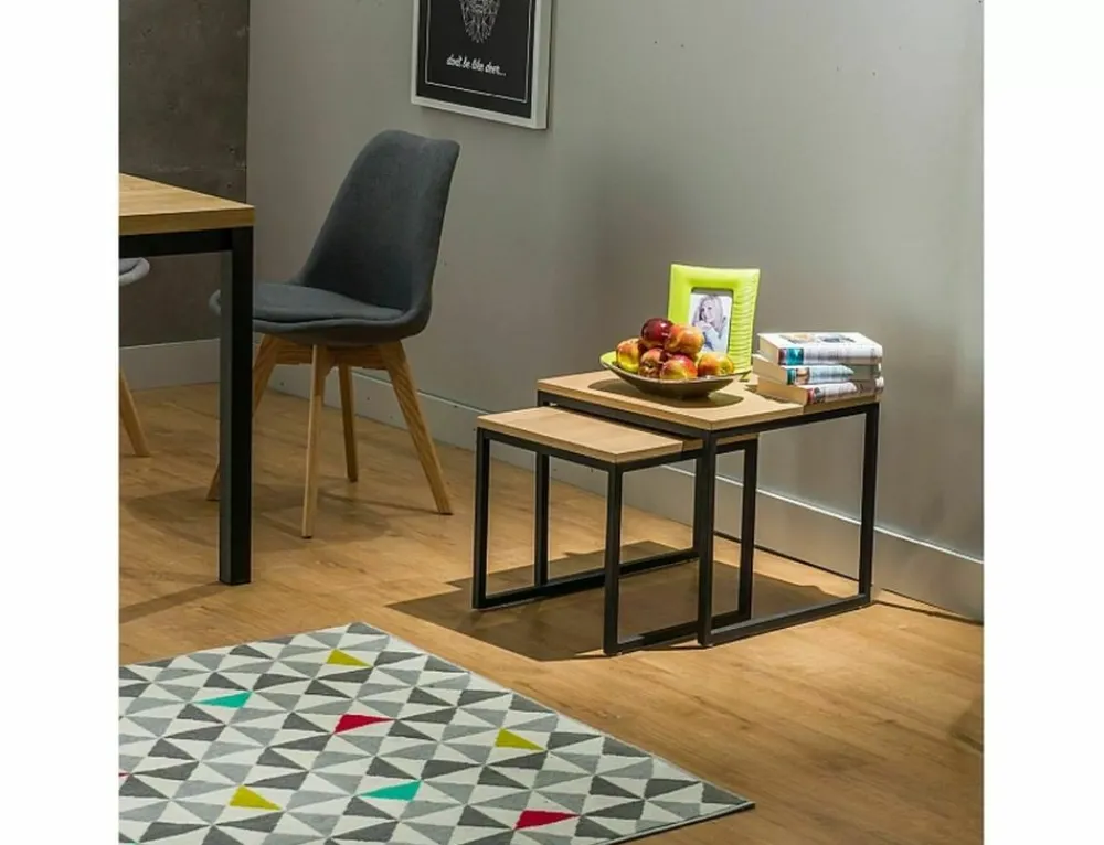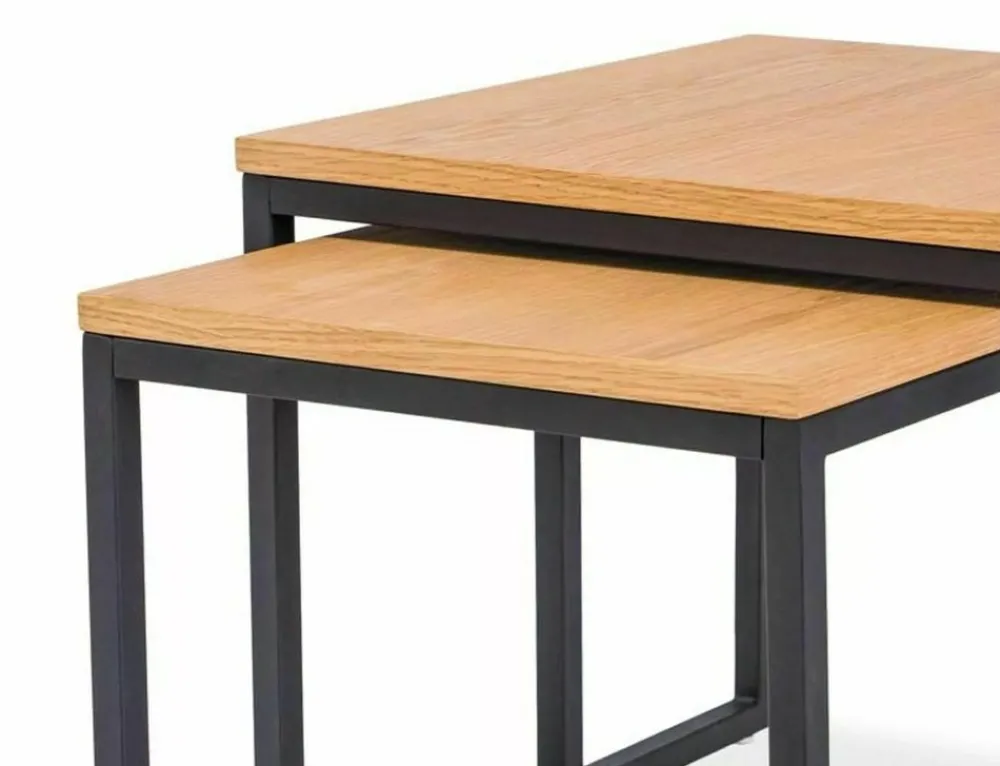 Zestaw ław, blat: MDF + okleina, kolor: dąb, stelaż: metal, kolor: czarny. Wymiary ław: