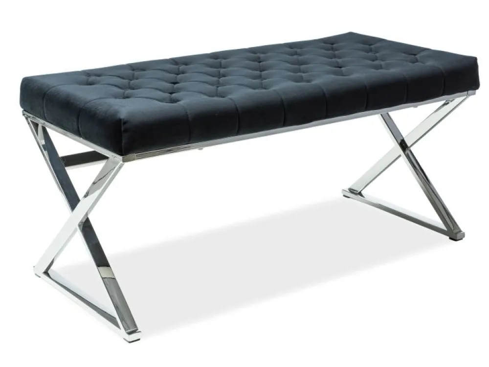 Ławka, tkanina aksamit, kolor: czarny, tap. 105 / metal, kolor: chrom.