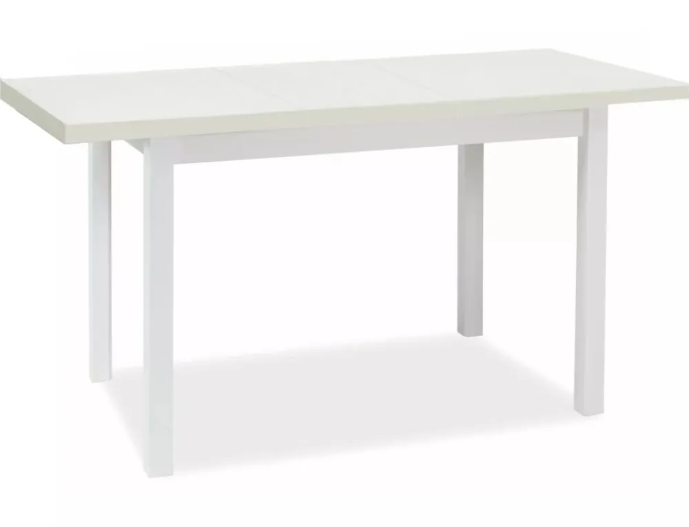 Stół rozkładany, blat: płyta laminowana, stelaż: MDF, kolor: biały mat / biały mat.