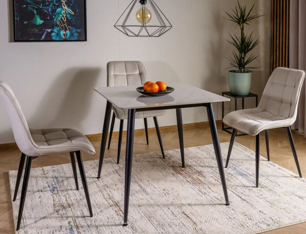 Stół, blat: ceramika, stelaż: metal, kolor: biały połysk / czarny mat.