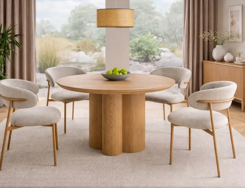 Stół, blat: MDF + okleina naturalna, stelaż: MDF + okleina, kolor: dąb.