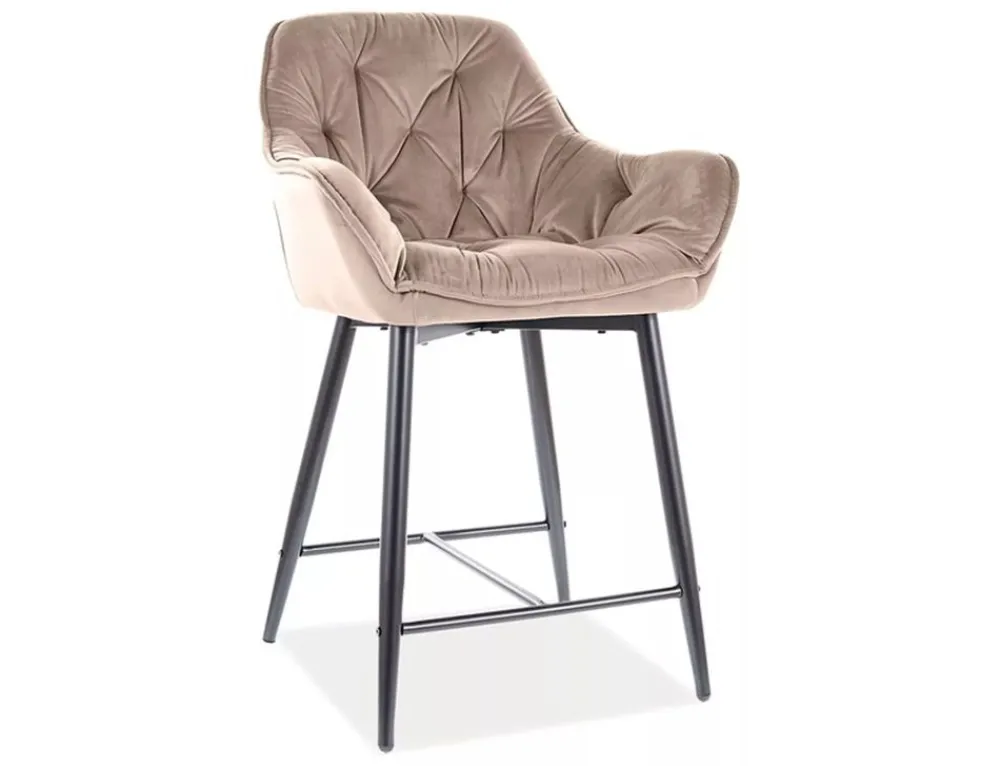 Półhoker, tkanina aksamit: Bluvel, kolory: beż 28 / metal, czarny mat