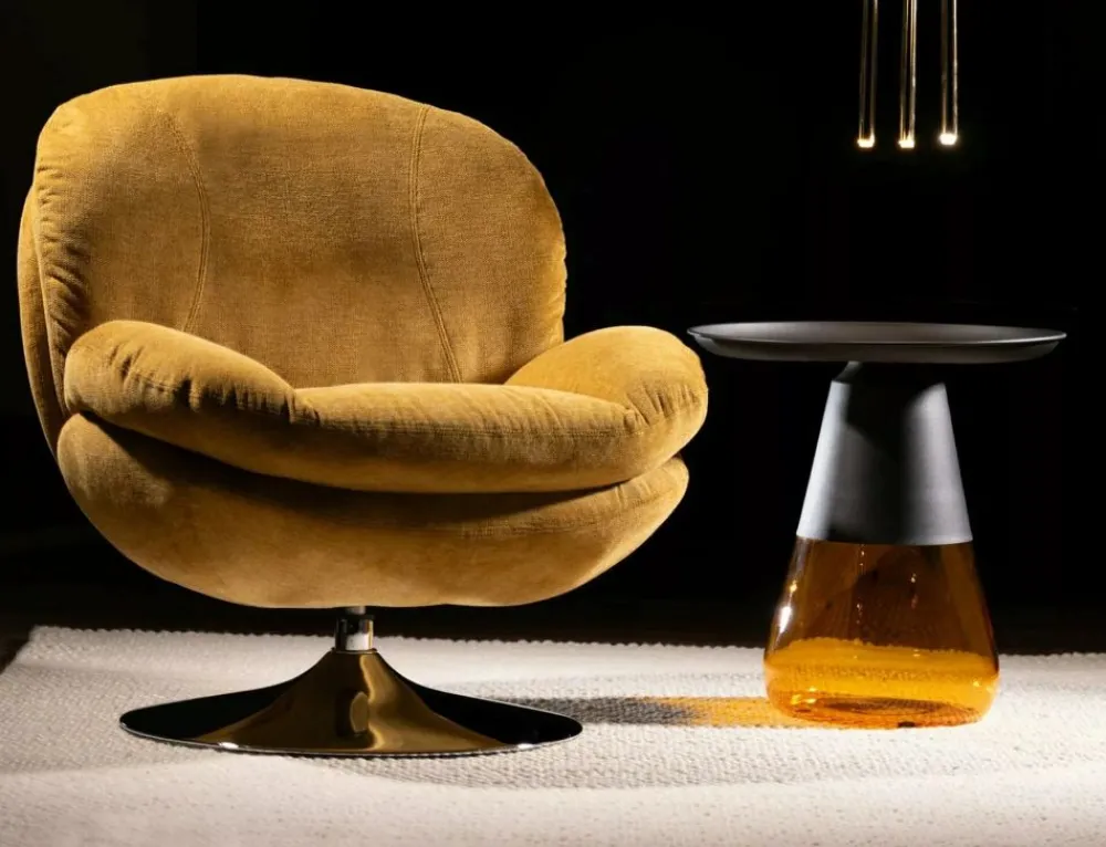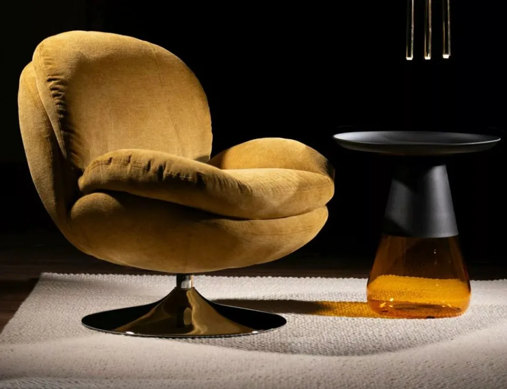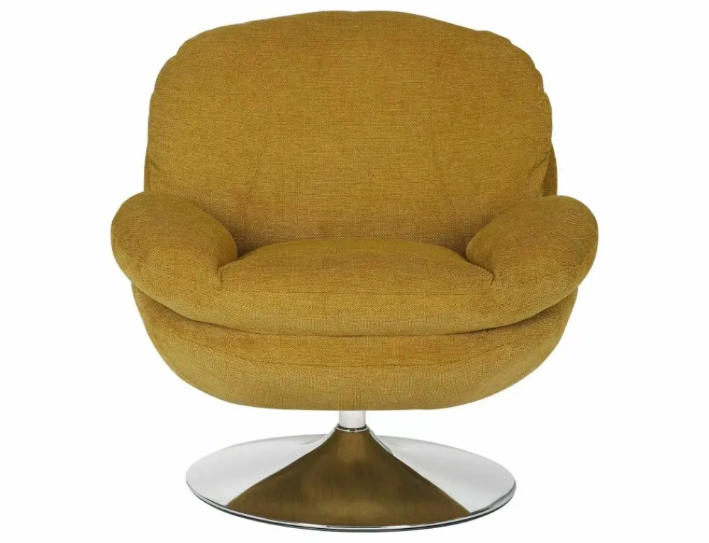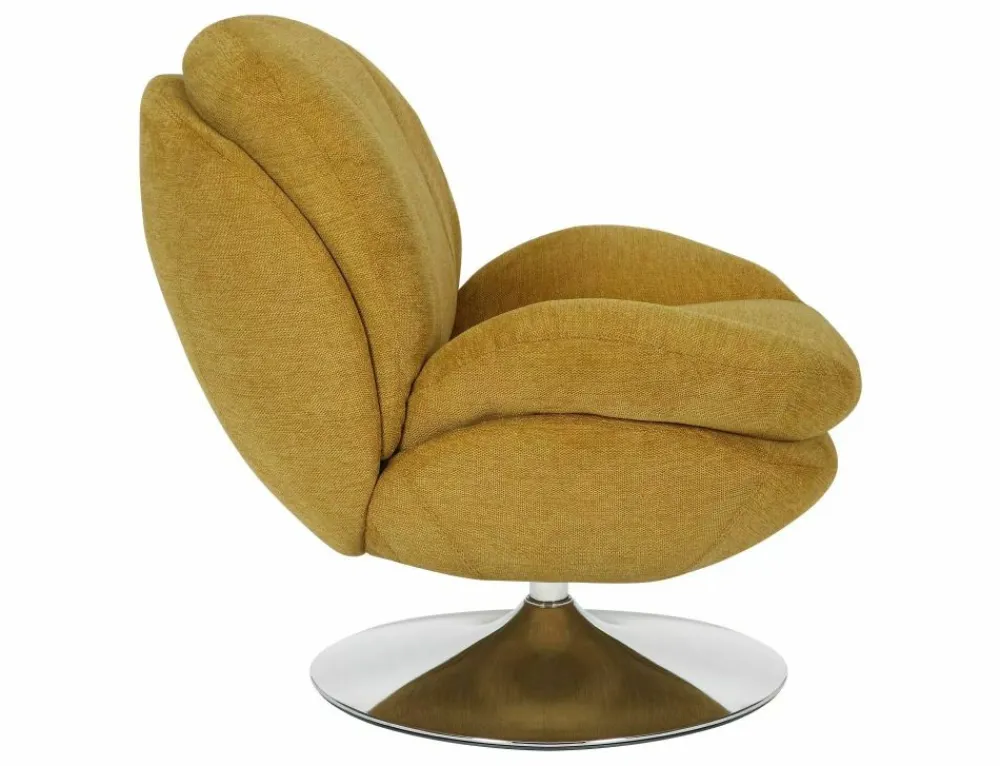 Fotel, tapicerka: tkanina Brego, stelaż: metal, kolor: curry / chrom. Siedzisko obracane w zakresie 360st.
