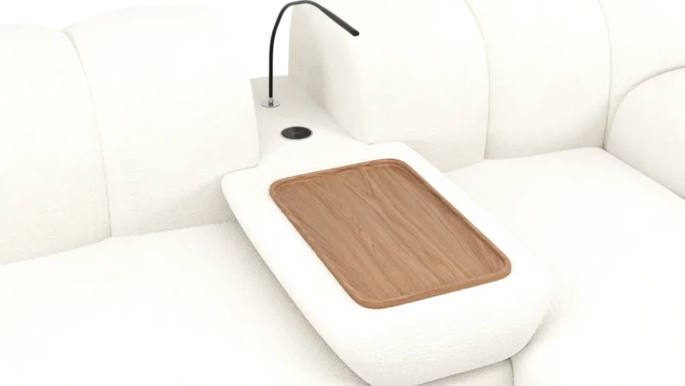 Windy wyróżnia się także dodatkami, których próżno szukać w większości narożników dostępnych online. W specjalnym module box znajdziesz ładowarkę indukcyjną, która pozwala ładować telefon po prostu odkładając go na blat. Do tego elegancka lampka LED, tworząca nastrojowe światło podczas wieczornego odpoczynku. To rozwiązania, które nie tylko podnoszą komfort użytkowania, ale też robią wrażenie na gościach i zwiększają funkcjonalność całej strefy wypoczynkowej. Windy to narożnik, który łączy design, technologię i sprytne detale – wszystko po to, by codzienne korzystanie z salonu było przyjemniejsze.