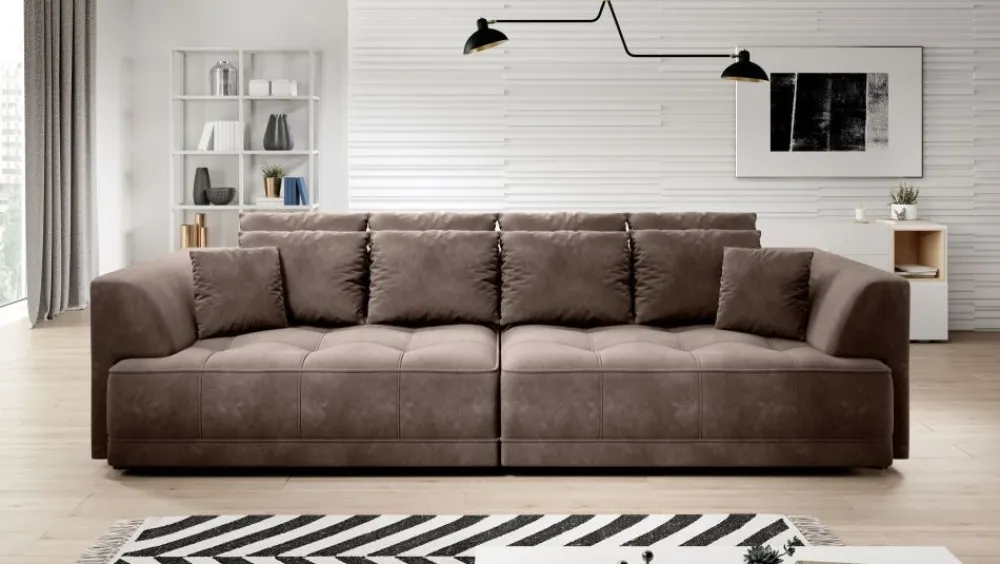 Sofa Tiga uwiedzie Cię niezwykłym desingem oraz swoją funkcjonalnością. Duża ilość poduch wręcz zaprasza do błogiego wypoczynku. Pomysłowe zastosowanie elektrycznego wysuwu w obu siedziskach idealnie sprawdzi się nie tylko w codziennym wypoczynku, ale także w przypadku okazjonalnego wykorzystania kanapy do spania. Perfekcyjnie odnajdzie się zarówno w klasycznych jak i nowoczesnych wnętrzach. Jeżeli cenisz sobie klasykę z ciekawymi elementami dekoracyjnymi ten mebel jest dla Ciebie!