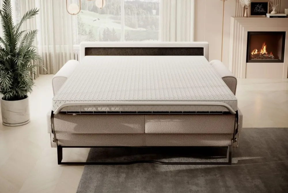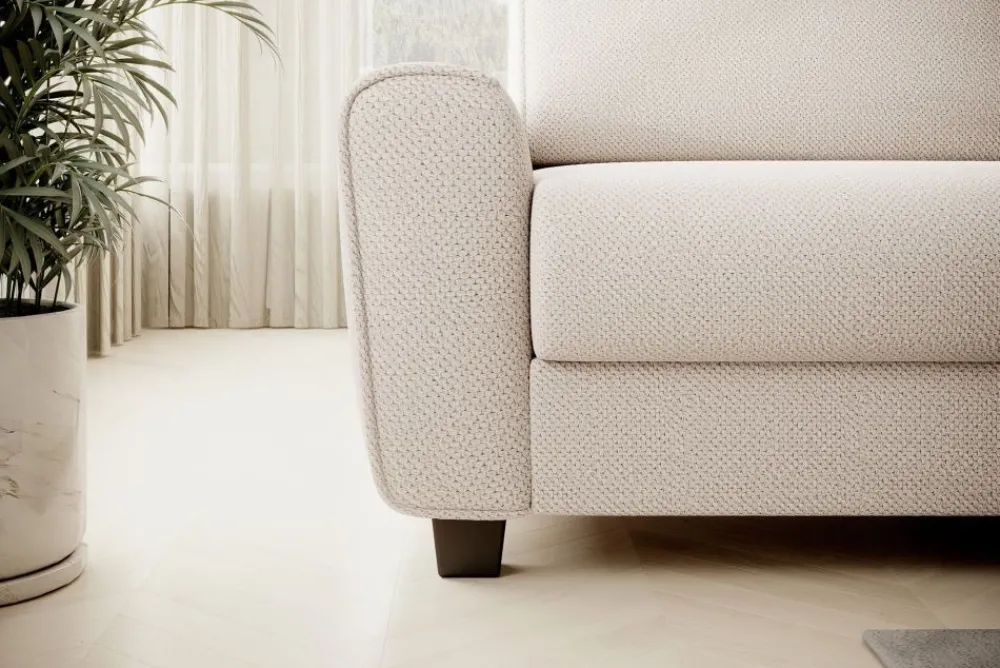 Dzięki solidnej konstrukcji oraz materacowi wysokiej jakości, kanapa Capri idealnie sprawdzi się jako sofa z materacem do spania. Zapewnia wyjątkowy komfort, który pozwala na zdrowy i spokojny sen, porównywalny z klasycznym łóżkiem. Rozkładana sofa jest doskonałym rozwiązaniem zarówno dla gości, jak i codziennego użytku, oferując pełnowymiarową powierzchnię spania. Trzy dostępne rozmiary pozwalają dostosować sofę do każdego wnętrza, niezależnie od dostępnej przestrzeni. Materac wykonany z wysokiej jakości materiałów dopasowuje się do ciała, zapewniając odpowiednie podparcie dla kręgosłupa. Dzięki funkcji spania, kanapa Capri łączy w sobie styl, wygodę i wszechstronność, stanowiąc idealne rozwiązanie do każdego domu.