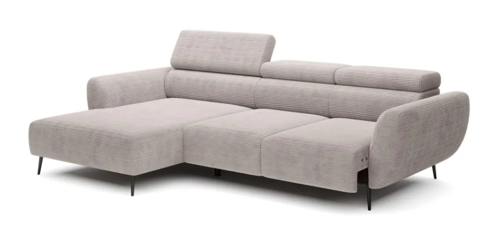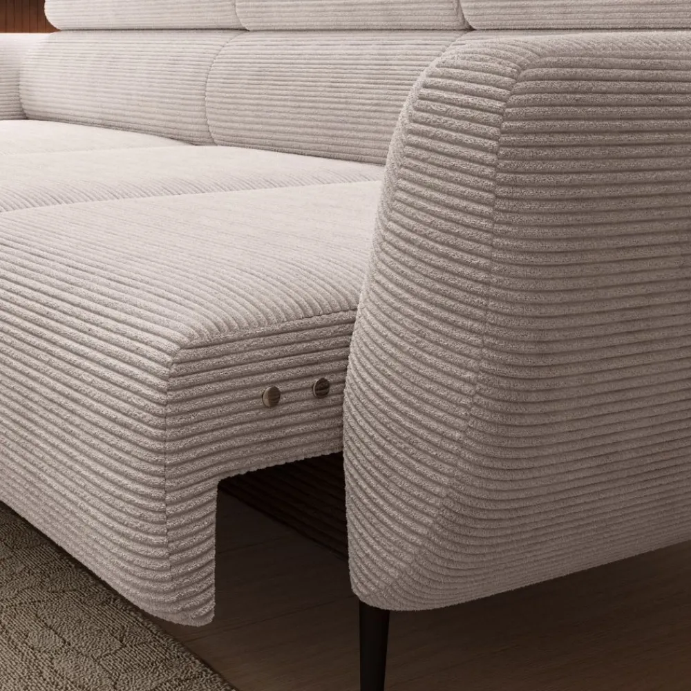 Jednym z największych atutów narożnika Alisson jest elektryczny mechanizm regulacji głębokości siedziska. Funkcja ta pozwala na płynne i bezwysiłkowe dopasowanie mebla do Twojej pozycji – idealna opcja do wypoczynku, czytania lub oglądania telewizji. To właśnie narożnik z wysuwem siedziska, który zwiększa użyteczność i wygodę codziennego życia. Elektryczne sterowanie działa intuicyjnie i bez hałasu, co sprawia, że korzystanie z funkcji relaksu jest przyjemnością. Dzięki temu modelowi zyskujesz nie tylko designerski mebel, ale też osobistą strefę komfortu. To doskonała propozycja dla nowoczesnych wnętrz, gdzie liczy się wygoda i technologia.