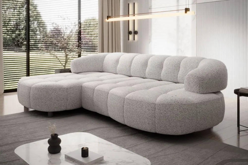 Narożnik Velpa S to wyjątkowa propozycja dla osób, które cenią nowoczesny design i nietuzinkowe rozwiązania. Jego półokrągła forma dodaje wnętrzu lekkości i elegancji, jednocześnie przyciągając wzrok oryginalnym kształtem. Subtelne linie mebla tworzą harmonijną całość, która idealnie współgra z modernistycznym wystrojem salonu. Dzięki kompaktowej formie ten mały narożnik sprawdzi się nawet w niewielkich przestrzeniach. Mimo niewielkich rozmiarów, oferuje dużą wygodę użytkowania i staje się centralnym punktem aranżacji. Idealnie wpasuje się zarówno w jasne, minimalistyczne wnętrza, jak i bardziej ekstrawaganckie kompozycje.