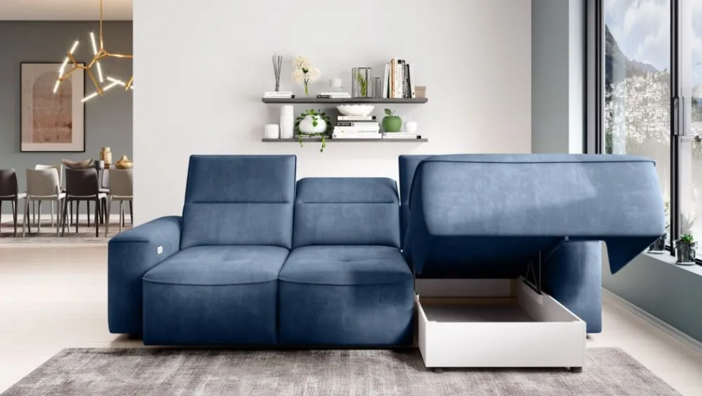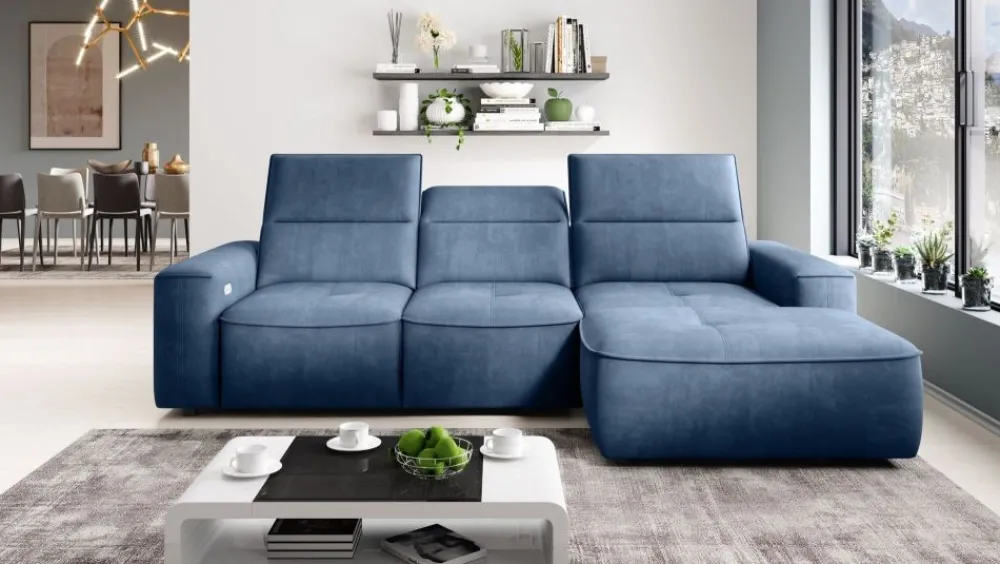 Narożnik posiada nowatorską funkcję relaks z elektrycznym wysuwem do 27 cm.