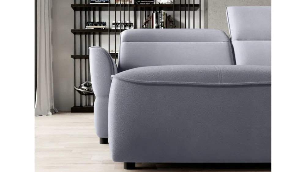 Narożnik posiada nowatorską funkcję relaks z elektrycznym ekstra wysuwem do 56 cm.