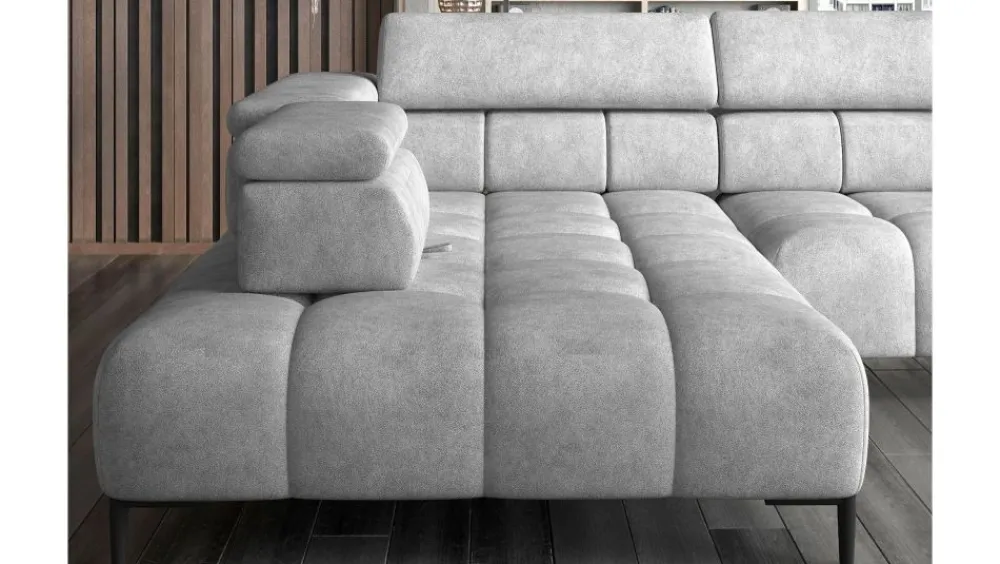 Narożnik Plaza sprawi, że Twoje mieszkanie nabierze niesamowitego charakteru. Niesamowity wygląd narożnika oraz delikatne pikowania idealnie sprawdzą się w każdym rodzaju aranżacji mieszkania od klasycznego po nowoczesny. Zastosowane funkcjonalności w postaci elektrycznie wysuwanego siedziska, regulowanych zagłówków oraz przesuwanych oparć sprawią, że Twój wypoczynek będzie wręcz niezapomniany. Wysokie, smukłe nóżki nadają mu wrażenie lekkości oraz z łatwością pozwolą Ci utrzymać pod nim czystość.