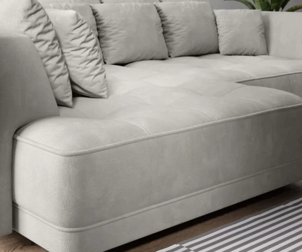 Narożnik Tiga uwiedzie Cię niezwykłym desingem oraz swoją funkcjonalnością. Duża ilość poduch wręcz zaprasza do błogiego wypoczynku. Pomysłowe zastosowanie elektrycznego wysuwu idealnie sprawdzi się nie tylko w codziennym wypoczynku, ale także w przypadku okazjonalnego wykorzystania mebla do spania. Perfekcyjnie odnajdzie się zarówno w klasycznych jak i nowoczesnych wnętrzach. Jeżeli cenisz sobie klasykę z ciekawymi elementami dekoracyjnymi ten mebel jest dla Ciebie!