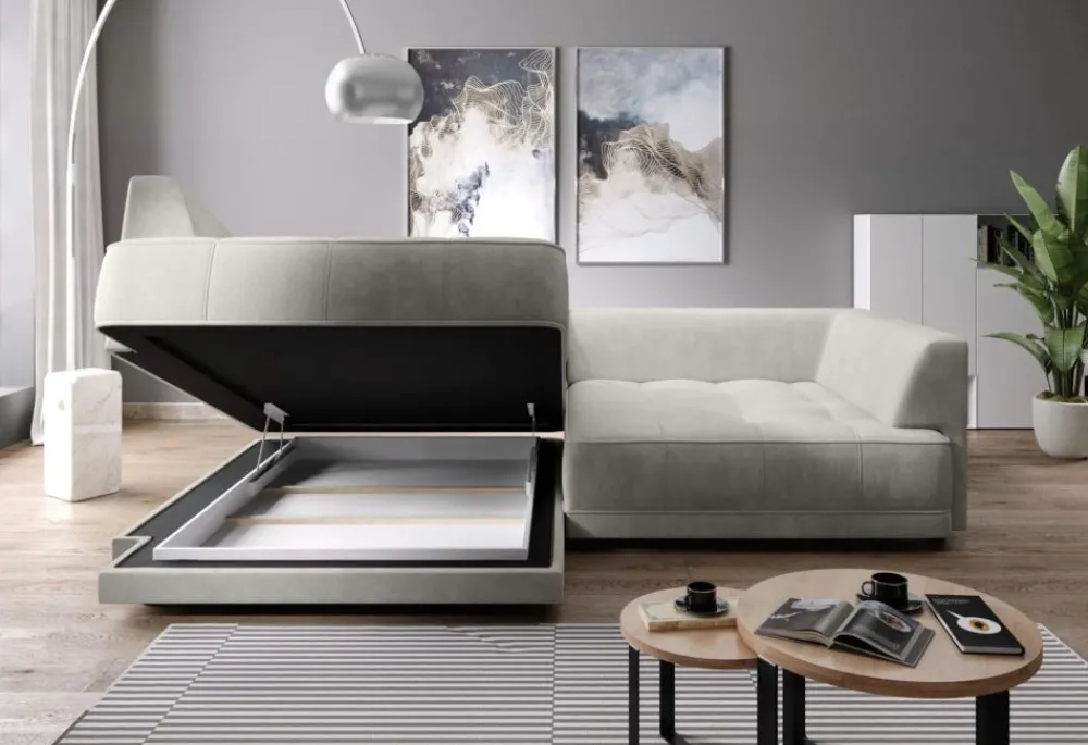 Nowoczesny narożnik z elektrycznym wysuwem siedziska