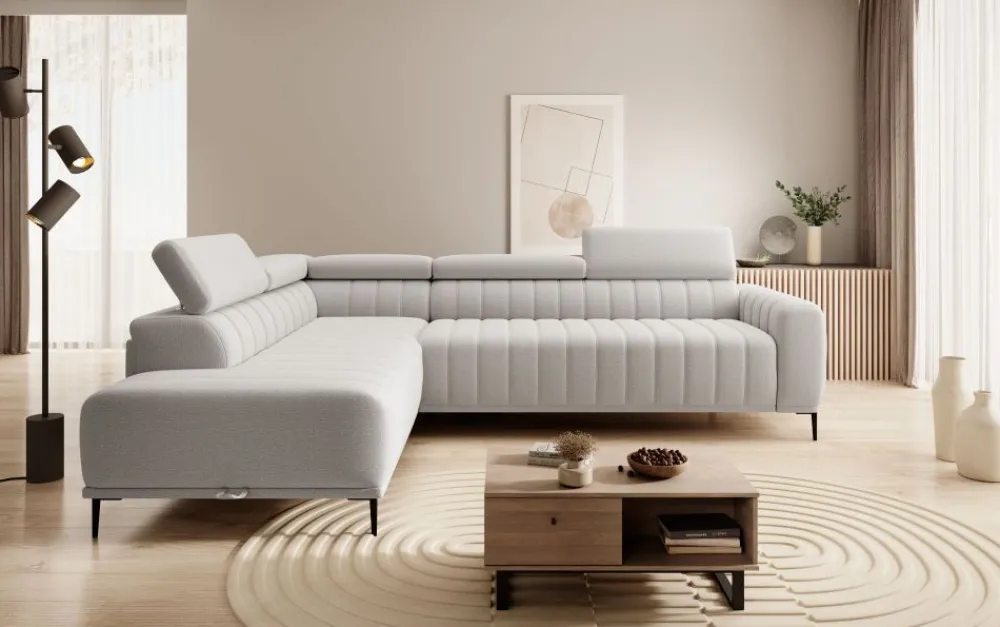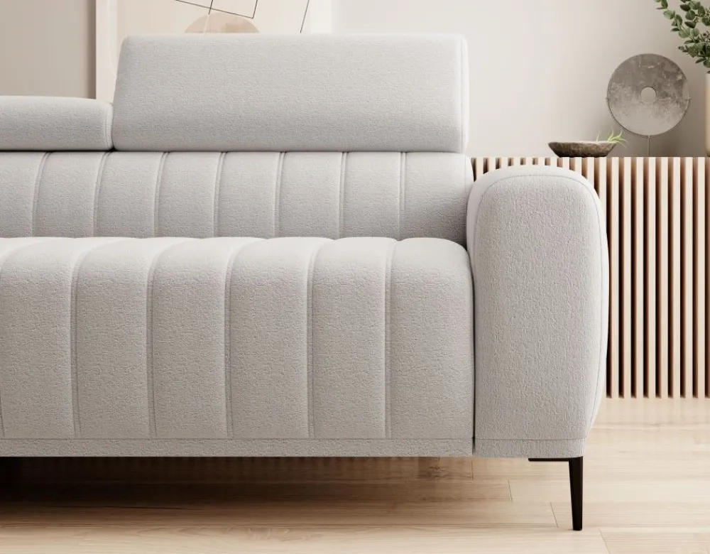 Narożnik Gandi sprawi, że wnętrze Twojego domu nabierze niesamowitego charakteru. Delikatne przeszycia niesamowicie komponują się z bryłą mebla, a wysokie nóżki nadają mu lekkości.