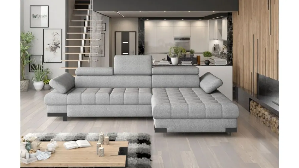 Narożnik Selva Mini odnajdzie się zarówno w klasycznych jak i nowoczesnych wnętrzach. Uwiedzie Cię niezwykłym desingem oraz swoją funkcjonalnością. Funkcja spania typu delfin idealnie sprawdzi się w przypadku okazjonalnego wykorzystania mebla do spania. Komfort użytkowania zwiększą regulowane zagłówki i podłokietniki. Szczególną uwagę zwracają fantazyjne nóżki. Jeżeli cenisz sobie klasykę z ciekawymi elementami dekoracyjnymi ten mebel jest dla Ciebie!