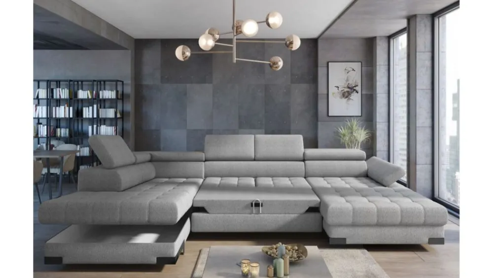 Narożnik Selva XL odnajdzie się zarówno w klasycznych jak i nowoczesnych wnętrzach. Uwiedzie Cię niezwykłym desingem oraz swoją funkcjonalnością. Funkcja spania typu delfin idealnie sprawdzi się w przypadku okazjonalnego wykorzystania mebla do spania. Komfort użytkowania zwiększą regulowane zagłówki i podłokietniki. Szczególną uwagę zwracają fantazyjne nóżki. Jeżeli cenisz sobie klasykę z ciekawymi elementami dekoracyjnymi ten mebel jest dla Ciebie!