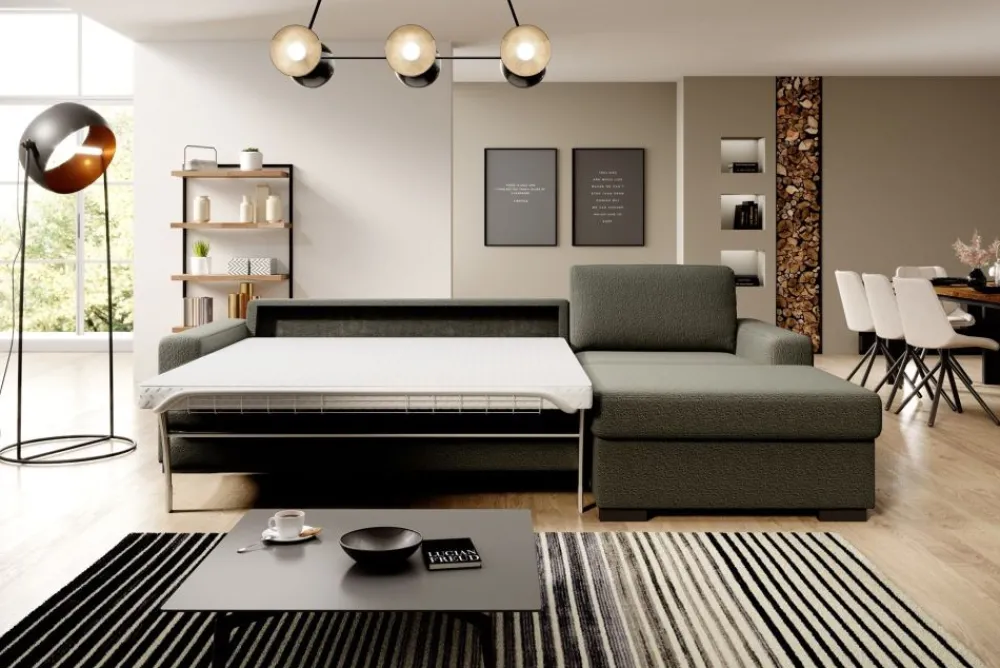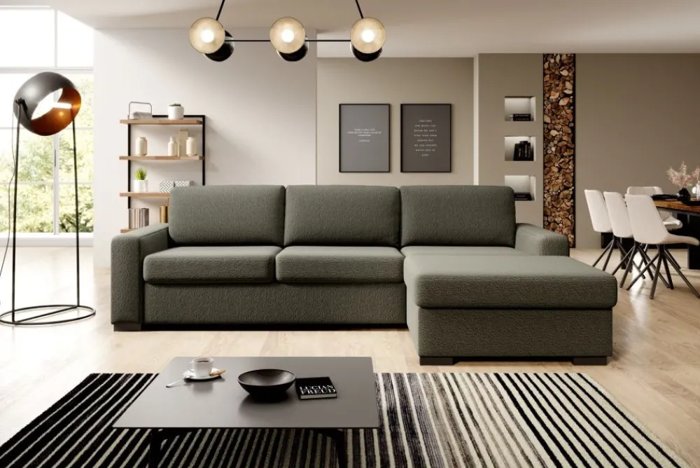 Odkryj doskonałą harmonię funkcjonalności i elegancji z naszym narożnikiem ze stelażem włoskim i wbudowanym pojemnikiem na pościel. Nasz mebel to połączenie nowoczesnego designu z praktycznymi rozwiązaniami, które zadowolą nawet najbardziej wymagających klientów.