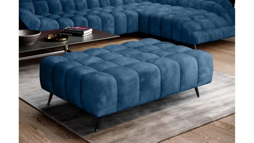 Pufa Gappa sprawi, że Twoje mieszkanie nabierze nowoczesnego charakteru. Wyróżnia ją miękka linia, opływowe kształty oraz oryginalne całościowe pikowania. Wysokie, smukłe nóżki nadają jej wrażenie lekkości, a także pozwolą Ci z łatwością utrzymać czystość pod meblem. Idealnie pasuje do lub Gappa.