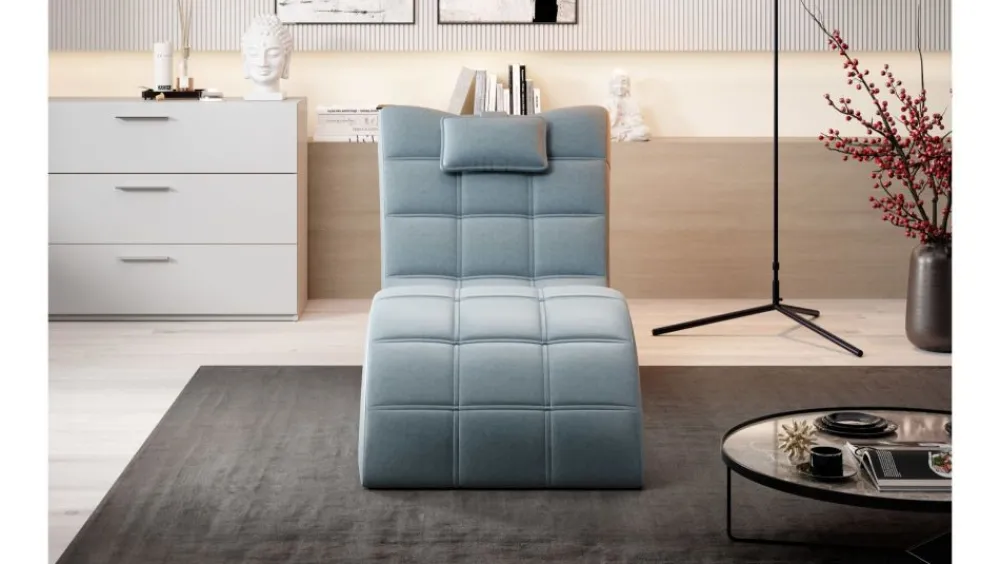 Szezlong London to nowoczesny mebel, który zapewni Ci wyjątkowy komfort wypoczynku. Mebel przyciąga uwagę swoim niebanalnym designem i sprawia, że nie sposób przejść obok niego obojętnie. Stylowe przeszycia podkreślają nowoczesny charakter mebla, nadając mu jednocześnie lekkości i świeżości. Dodatkowym atutem szezlonga jest praktyczny zagłówek, który zapewni Ci jeszcze więcej komfortu podczas relaksu z książką lub ulubioną muzyką.